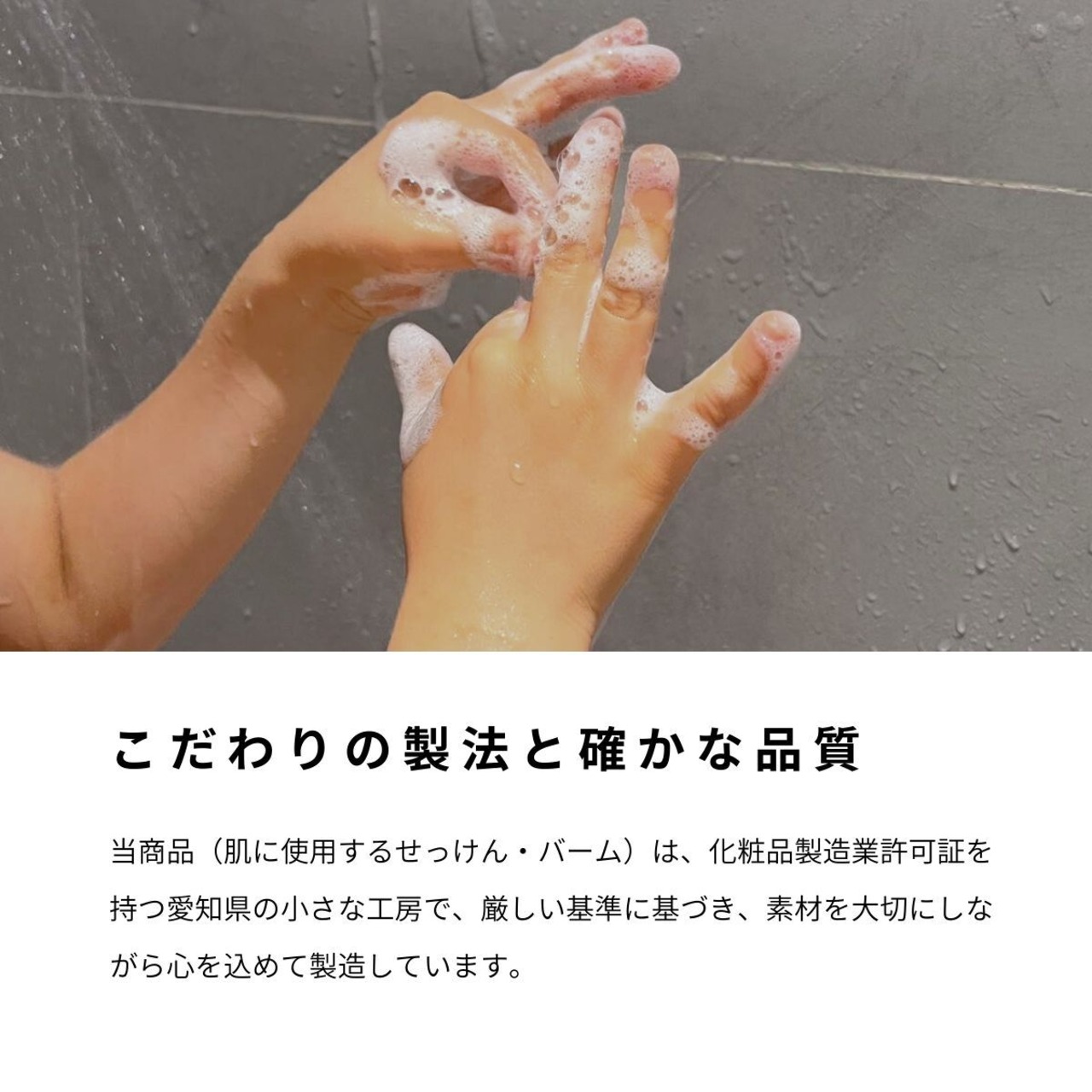 -当商品(肌に使用するせっけん・バーム)は、化粧品製造業許可証を持つ愛知県の小さな工房で、厳しい基準に基づき、素材を大切にしながら心を込めて製造しています。