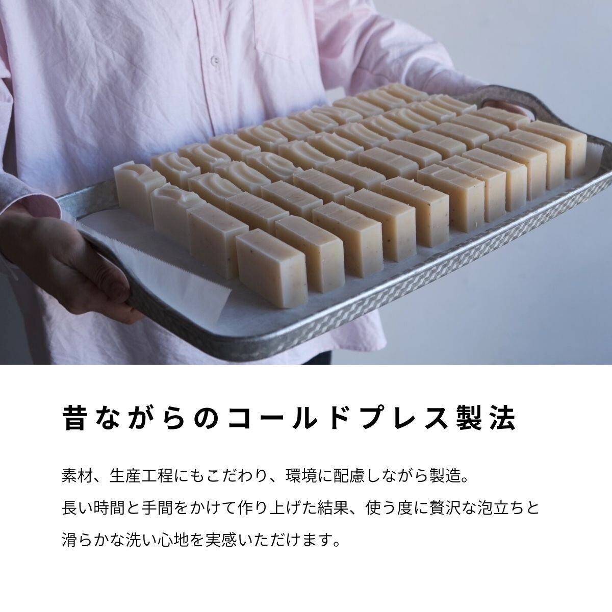 昔ながらの「コールドプロセス製法」を用いて、すべて手作業で作られた贅沢なせっけん。