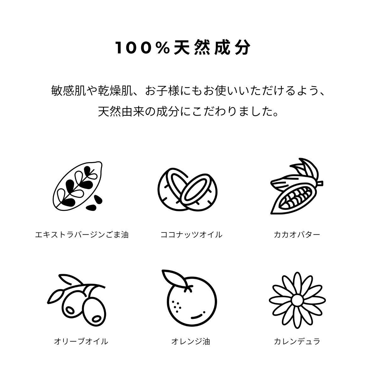 敏感肌や乾燥肌、お子様にもお使いいただけるよう、天然由来の成分にこだわりました。